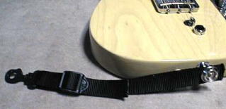 下左 Gベンドするため、このジムダンロップのストラップロックのついたベルトをズボンのバンド通しに引っ掛けます。