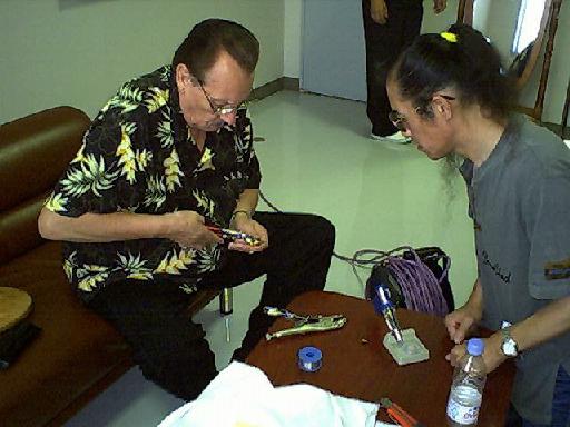能登公演の直前にキス-チューナーを直すノーキーエドワーズ