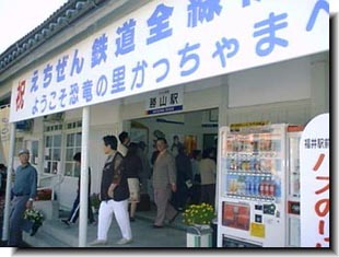 平成15年10月19日。ようやく「えちぜん鉄道」が全線開通しました。京福時代の事故以来、陸の孤島となりつつあった勝山に再び電車が通ります。