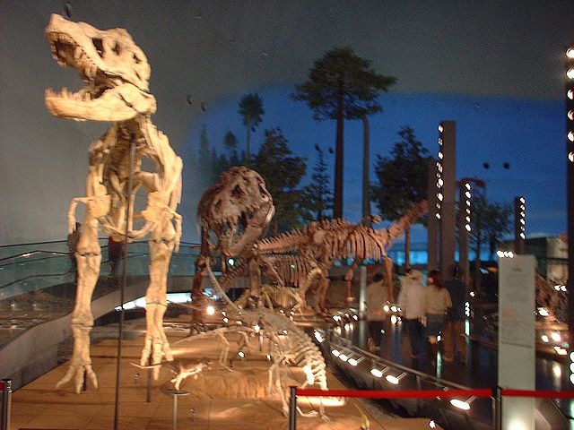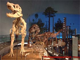 広大な展示室では、40体以上もの恐竜骨格をはじめ千数百の標本の数々、大スクリーンの映像、動くフクイラプトルの模型などを見ることができます。