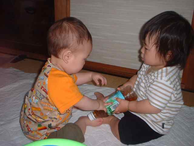 ペットボトル返してよお〜。 でもいつもは仲良し(奏美ちゃんの方が強いけど・・・・)