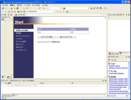 ちょっと見づらいかもしれませんが、2度目以降VS.NETを開くと、前回使用していたプロジェクトの一覧が上記のようなスタート ページとしてHTMLで表示されます。