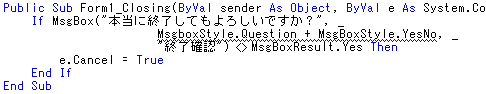 If MessageBox.Show("本当に終了してもよろしいですか?", _