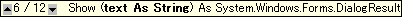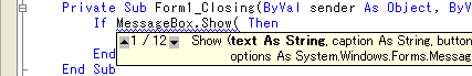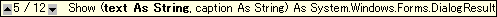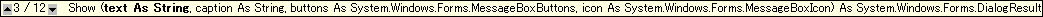 次々とShowメソッドに関するツールヒントがでてきますが、全く同じ名前のShowメソッドで引数の違うものが12個ある事がわかります。