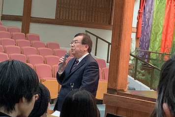 | 加賀藩前田家が培ってきた歴史文化は、現在の北陸に大きな影響を与えている。当会では加賀藩と縁の地の歴史を学ぶことを目的としている。2025年度は、高野山と加賀藩前田家とのつながりと題し、県立能楽堂にて、能「高野物狂」の舞、空海の創作舞踊、高野山から講師をお招きした。高野山とのつながりといえば、高野山奥の院には、前田家の歴代藩主等の供養塔はもちろん、戦国時代に建立した利家とまつ、そして、豊臣家滅亡直前に建立した4女豪姫の供養塔もある。また、石川県は茶道や能楽の盛んな土地柄で、これは主君秀吉の影響によるものである。茶の湯では利家は千利休の直弟子であり、能楽では、宮中や高野山でも秀吉と共に演じている。 | ||