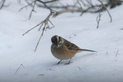 この日は風が強かった。 風上に向いて止まり、強風をやりすごす。 冬の景色にミヤマホオジロはよく似合う。 1月13日撮影 |