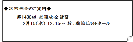 楽しい例会をありがとうございました。本年もよろしくお願いします。 |