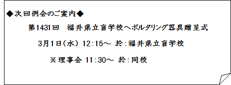 第1429回例会 平成29年2月1日 於:福井県繊協ビル |