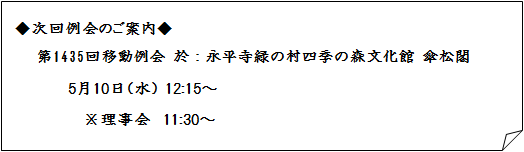 第1433回例会 平成29年4月5日 於:福井フェニックスホテル |