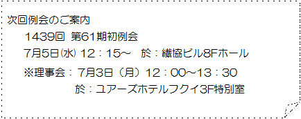 第1436回例会 平成29年6月7日 於:福銀センタービル |