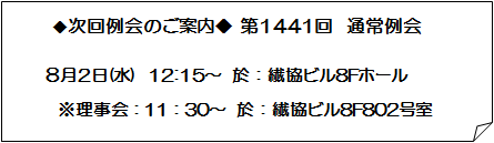 | 第1439回例会 平成29年7月5日 於:繊協ビル8Fホール | ||||||||||||||||||||