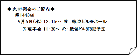 | 第1441回例会 平成29年8月2日 於:繊協ビル8Fホール | ||||||||||||||||||||||