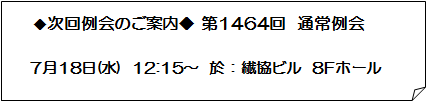 | 2018/7/4 (水)12:15〜 於:繊協ビル8Fホール | |||||||||||