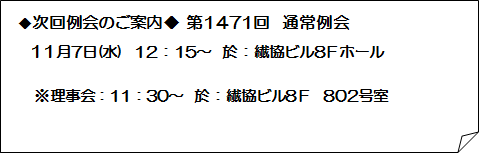 | 第1469回例会 平成30年10月3日 於:繊協ビル8F | |||||||||||