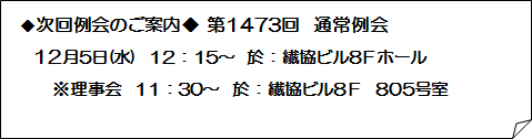 第1471回例会 平成30年11月7日 於:繊協ビル8F |