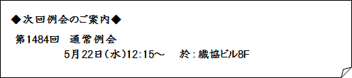 第1482回例会 平成31年4月24日 於:繊協ビル8F |