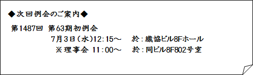 | 第1485回例会 平成31年6月5日 於:繊協ビル8F | |||||||||||