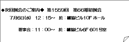 | 第1557回例会 令和4年6月1日 於:繊協ビル10F | |||||||||||