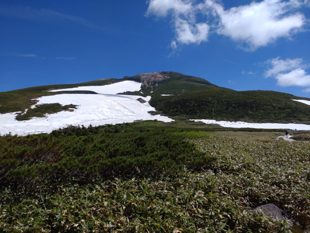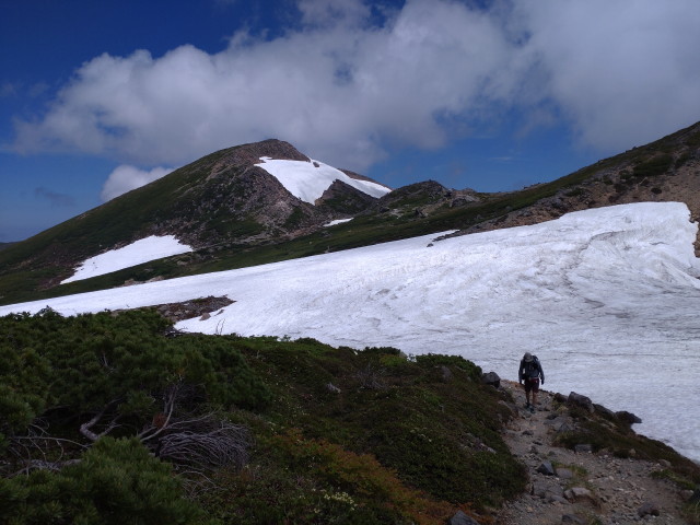 エコーラインを下る予定でしたが、残雪がかなりあるようで黒ボコ岩経由で砂防新道を下りました。