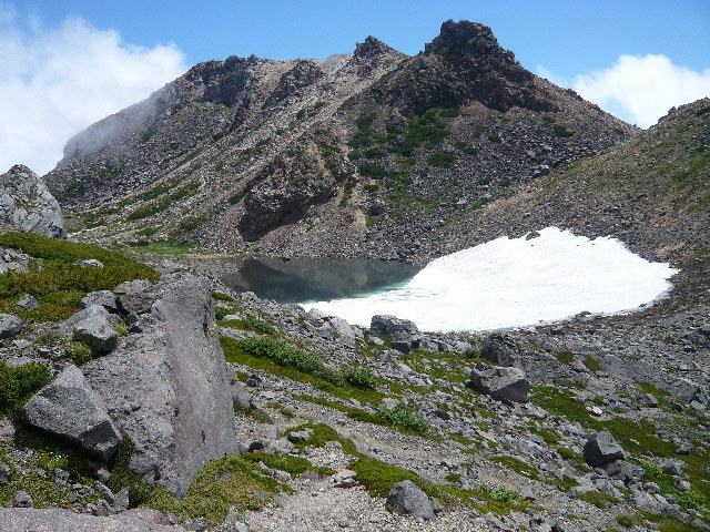 翠ヶ池をはさんで剣ヶ峰、御前ヶ峰 |