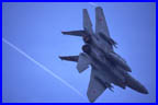 プログラムが着々と進むなか、なんと突然のスクランブル。丁寧に会場アナウンスまでしていたので、これもデモだと思った人も多かったようですが。低空からの激しい捻りで海上へ抜け、正体不明な飛行機を追っ払いに行きました。