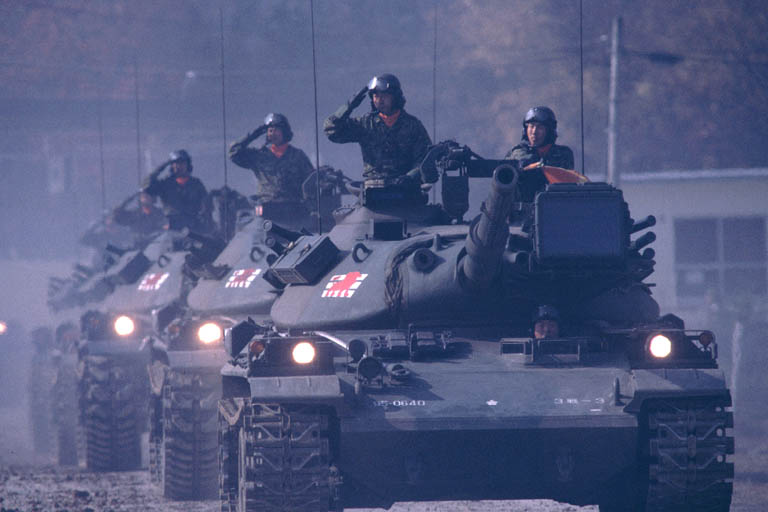 朝6時半に敦賀市内でmiyacchiさんと待ち合わせ。そして今津駐屯地に着くと開門待ちの車列のなかにskyerさんを発見。そして雪衛門さんも到着。雑談を交わしているうちにゲートオープン、駐車場へとクルマを進めます。車を駐車し、そこからはバスに乗って会場へ。生まれて初めて陸自の基地に入りました。バスを降りて式典会場のほうへ歩いていくと、目の前に74式戦車が出現。初めて至近距離で見る戦車の威圧感に大興奮です。