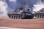 記念式典のあと、いよいよお目当ての訓練展示が開始されました。ただでさえ迫力のある74式戦車の砲門から放たれる空砲はド大迫力!その音は地元三国花火の2尺玉なんて比じゃない音圧で、なぜか目が痒くなりました。やはり耳と目って繋がっているんですね。
