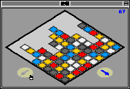 タイルの初期状態は、各色20枚ずつをランダムに配置しているので、全てのタイルを消せる保証はありませんが、移動の規則が切り変え可能な事で可能性は高くなっているようです。