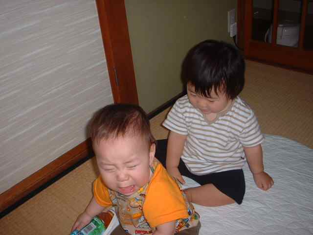 ペットボトル返してよお〜。 でもいつもは仲良し(奏美ちゃんの方が強いけど・・・・)