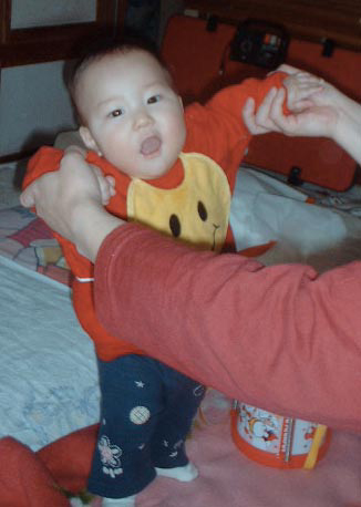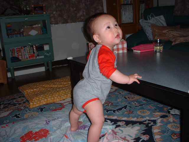 5月11日 ハイハイもできないくせに、さかんに「つかまり立ち」をしたがるようになりました。
