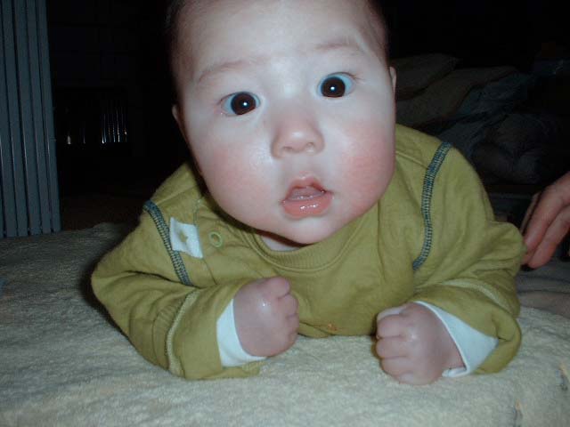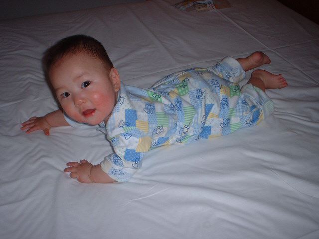 5月29日 下にハイハイできないと書きましたが、この2,3日で、急に匍匐(ほふく)前進が上手になり、