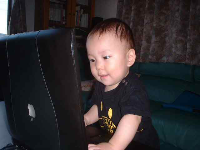 Power Bookにすごく興味がある様子。頼むから壊さないで!
