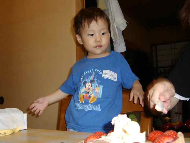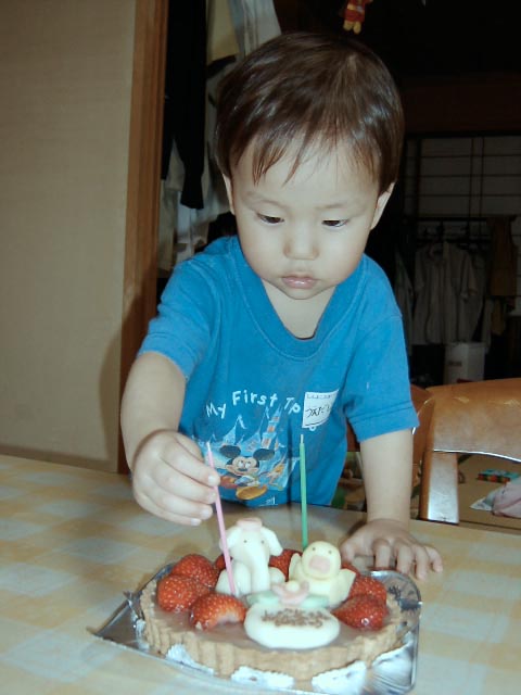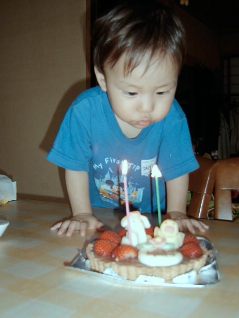 ろうそくを立てて、・・・・・・・・・・・・・・・・・「ふ〜っ!」 ママがケーキ