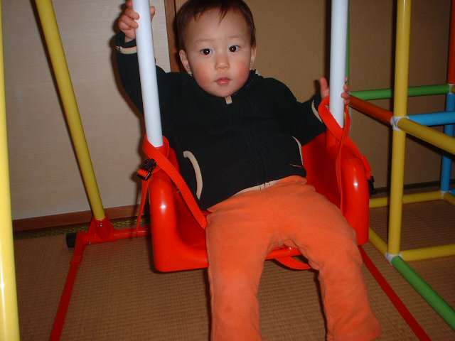 2月 モニタに映った自分に向かって。 一人でブランコに乗れました。