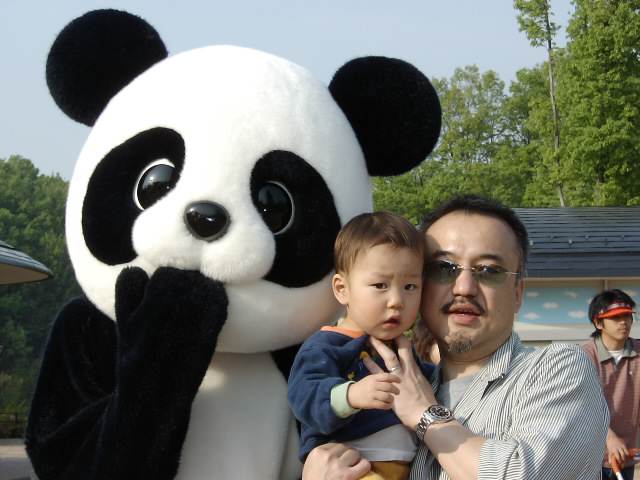 こどもの日に、動物園でパンダと。 階段だって降りられます。