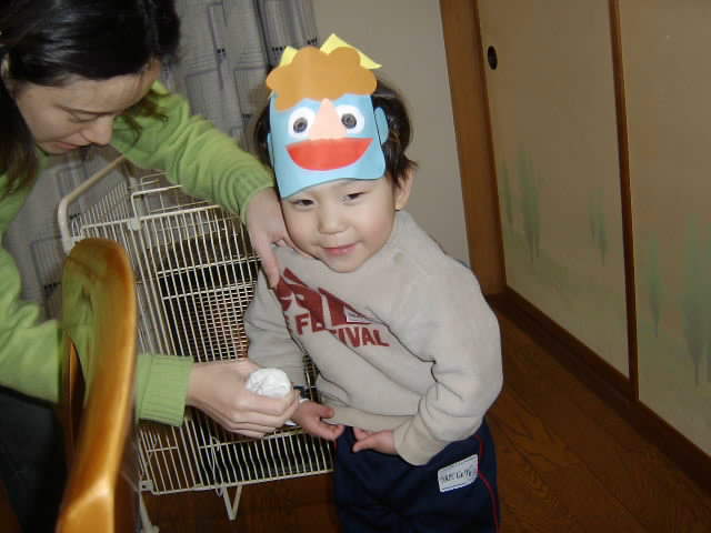 2月 節分 我が家の伝統行事、正月の福茶の時の梅干しの種と歳の数の豆を包み、