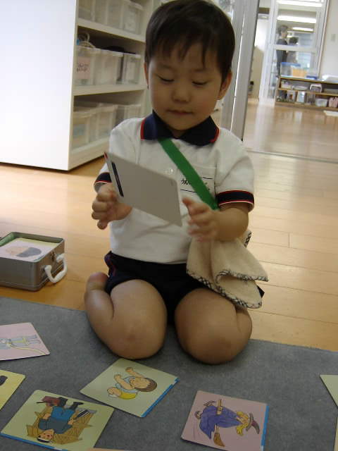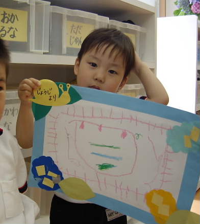 6月 父の日は、保育園でパパと一緒にあそびました。プレゼントのパパの絵には、ちゃんとひげも。
