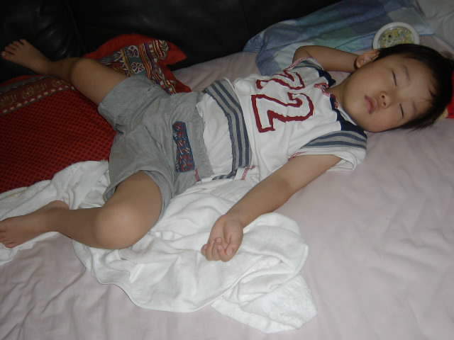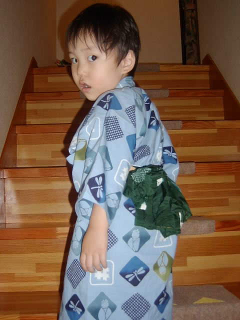 7月 七夕ではじめて浴衣を(お下がりをもらいました)。帯はなんと、私の子供の頃のものです。寝姿もだいぶ男らしく(笑)なってきました。