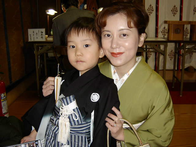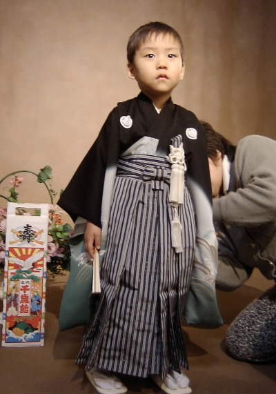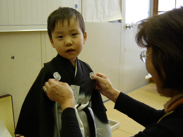 びよういんで着付けをしてもらい、写真館で記念撮影。かなり緊張気味。