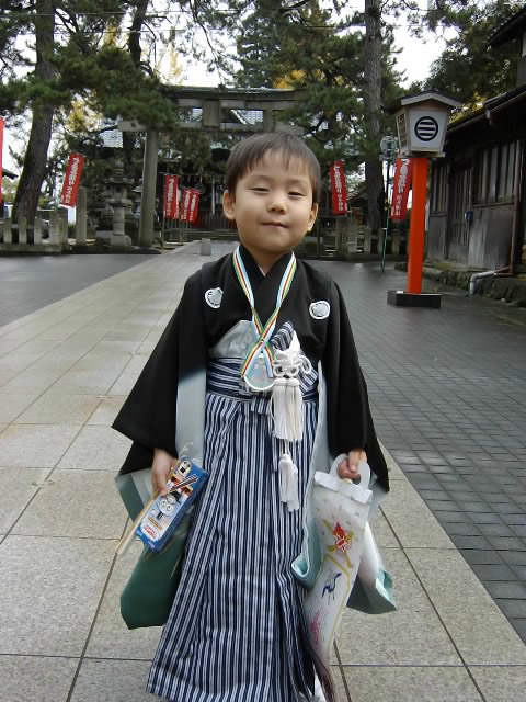 11月 晴れの七五三。みんなで神社にお参り。千歳飴やおもちゃをもらってごきげん!