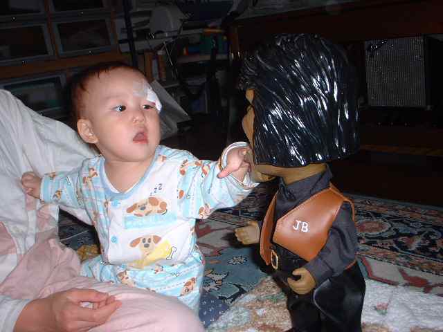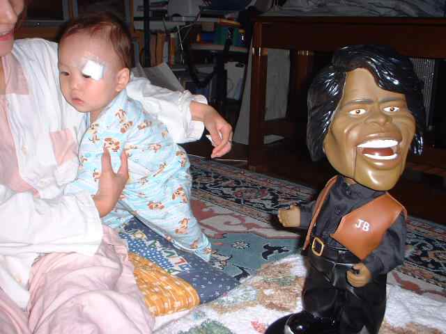 うりゃうりゃ!・・・・・・・ってやってるうちに、George 自分でJBの足下のスイッチを押して、JBが突然踊り出した!