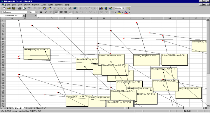 【マクロ型】WordやExcelなどのマクロ機能をつかうウイルスです。技術レベルの低いクラッカーでも容易に変種をつくれるのが厄介です。
