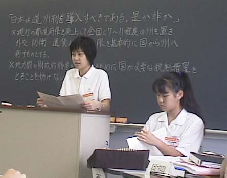 | 千種高校の第二反駁。若狭の高橋が、情熱的に語ったのに対し、淡々とした口調ですが、相手に聴かせるスピーチ、さすがでした。 |