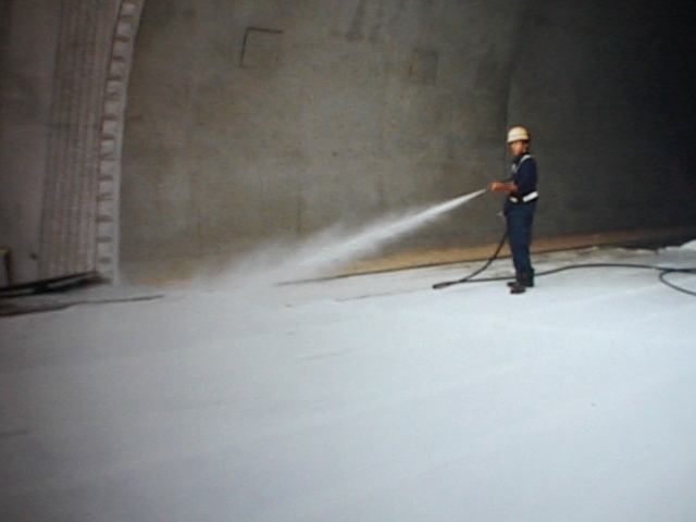 TNの出入り口につき直射日光が当たるため、養生マットを設置し散水養生を行います