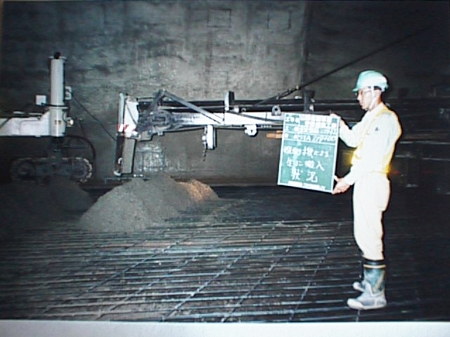 縦取り機から供給されてきた生コンを、SP前に均等に搬入します。