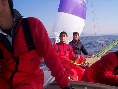 今日は、終始微風でスタートも延期。