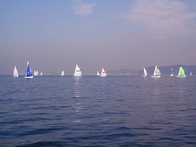 何とか定刻にスタートしたものの、途中に無風状態となることもあり、昨日と同様に定刻内にフィニッシュ出来ない艇が数多く発生しました。