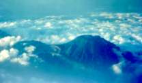 ジャンボが並んでいるので大きな飛行機かと思えば,日本でいえば,YS-11のような小型のプロペラ機で,飛行機のおしりから機内に入った.機内に入ると,けっこう古い飛行機のようだ.後の方の右側に席に座る.飛上がると,美男のスチュワ−トがサンドイッチを配る.窓の外は,朝の光がまぶしくてよく見えない.下の方は雲海かな?天井の1ケ所に小さな穴があいているらしく,外気がガスが吹出すように入ってきているのが見える.”大丈夫かな?”なんて思いながらの1時間あまりのフライトだった.けっこうウキウキした.