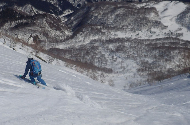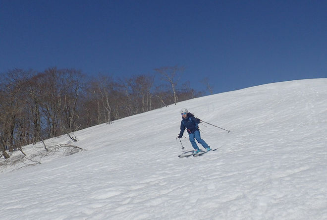 薙刀山に荷物デポして、日岸山との間の広大斜面を |